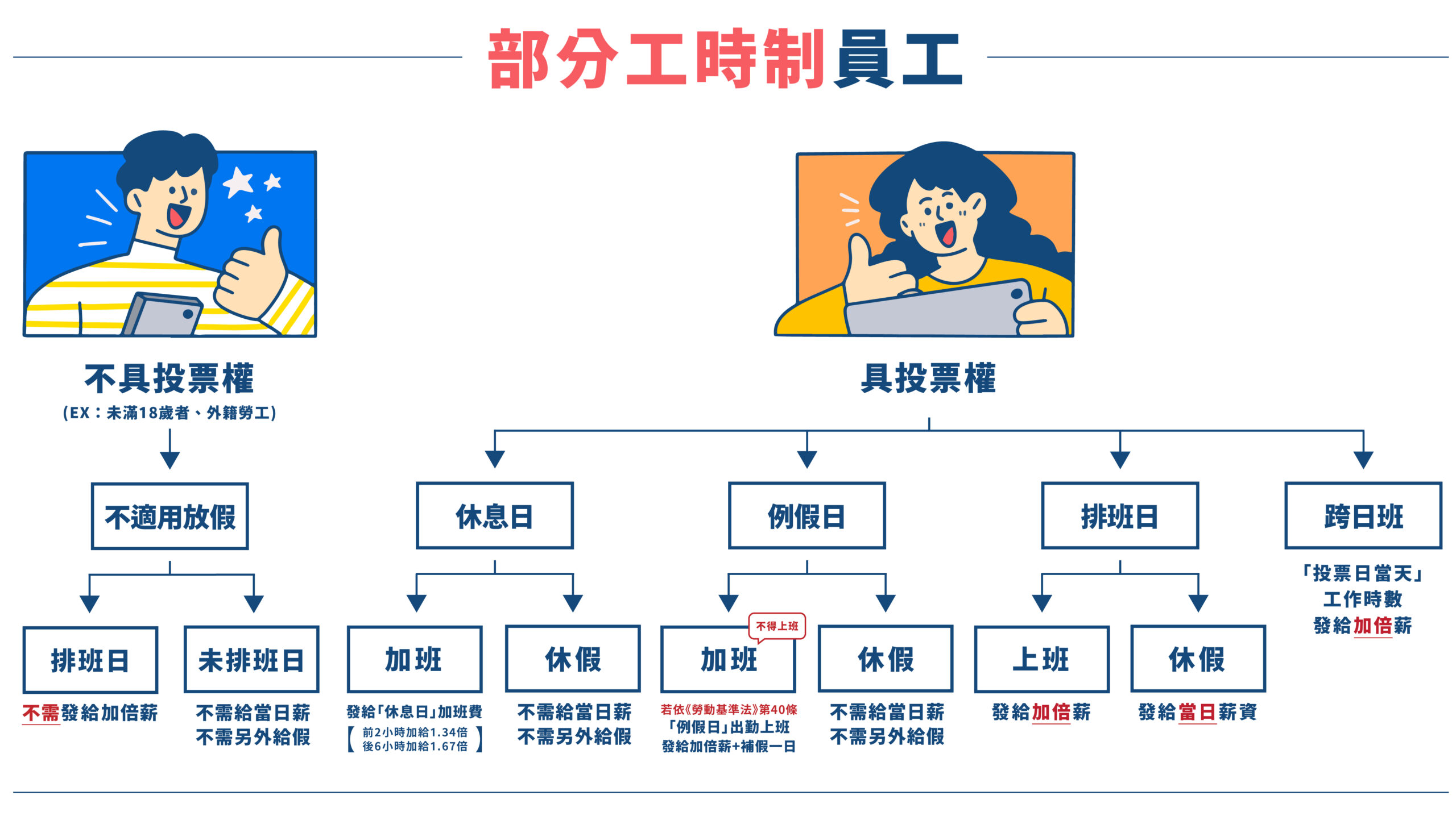 - 不具投票權員工投票日原屬「工作日或休假」,不適用放假