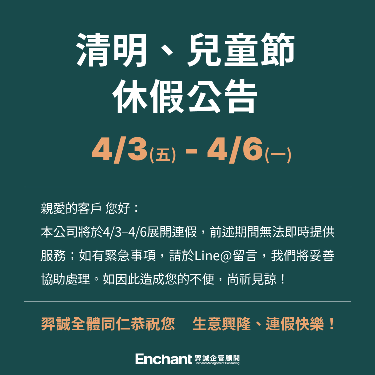 清明兒童節休假公告