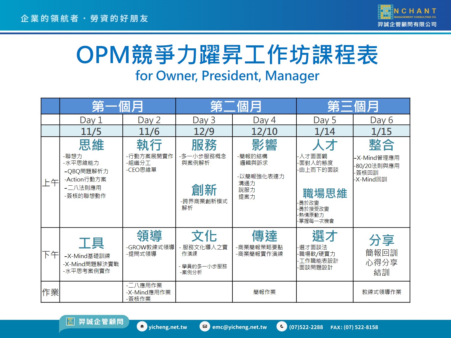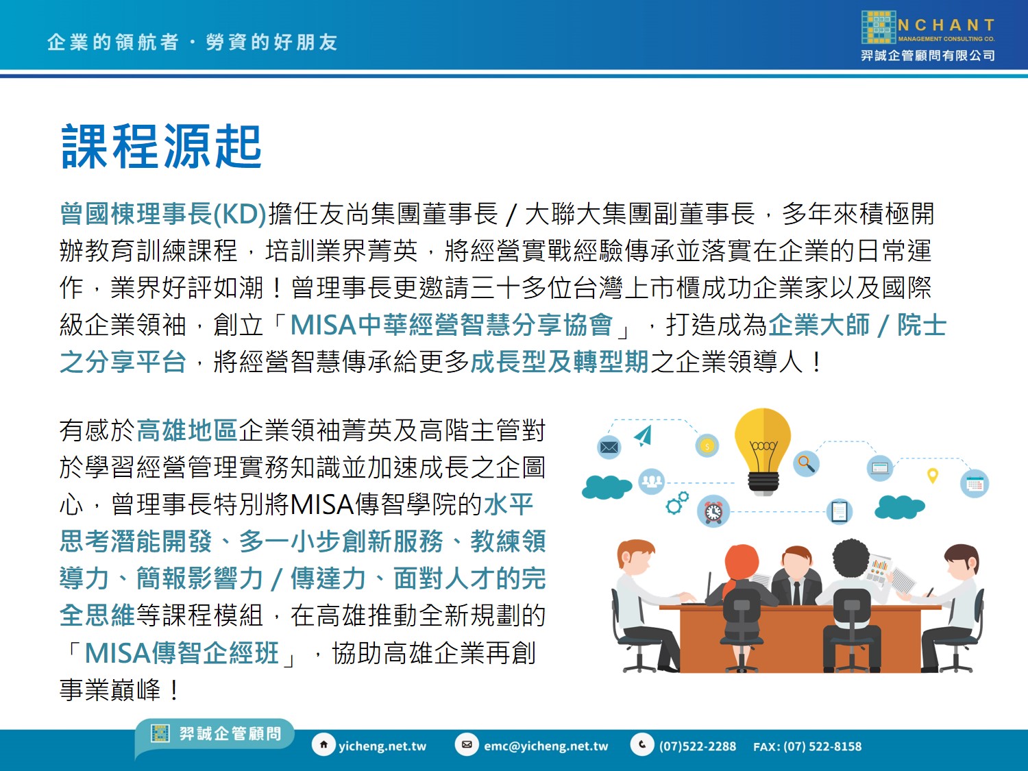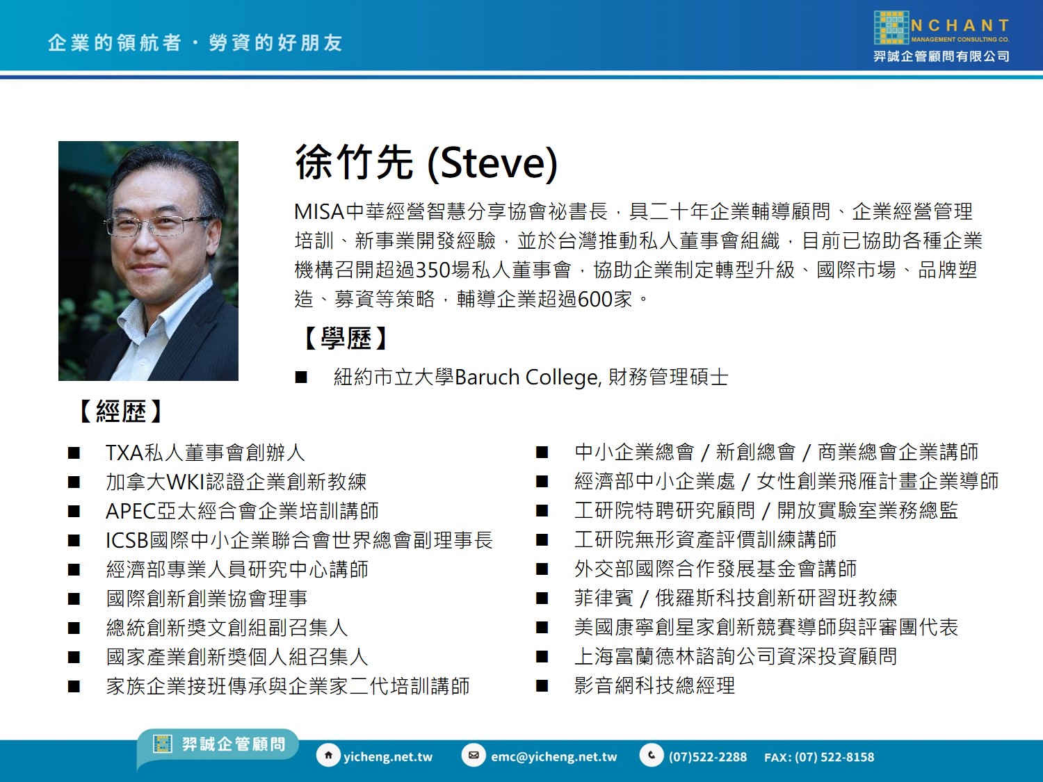 羿誠企管顧問有限公司是由一群結合企業勞動法令、人力資源、財稅規劃、經營管理…等各領域優秀人才所組成的顧問公司,二十幾年來,為企業建立符合勞動法令之公司制度、管理規章以及薪資結構,深獲客戶之信賴與肯定。